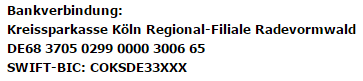 | Satzung: | Mit dem Aufnahmeantrag wird die Vereinssatzung anerkannt. Diese kann auf Wunsch eingesehen werden. | |||